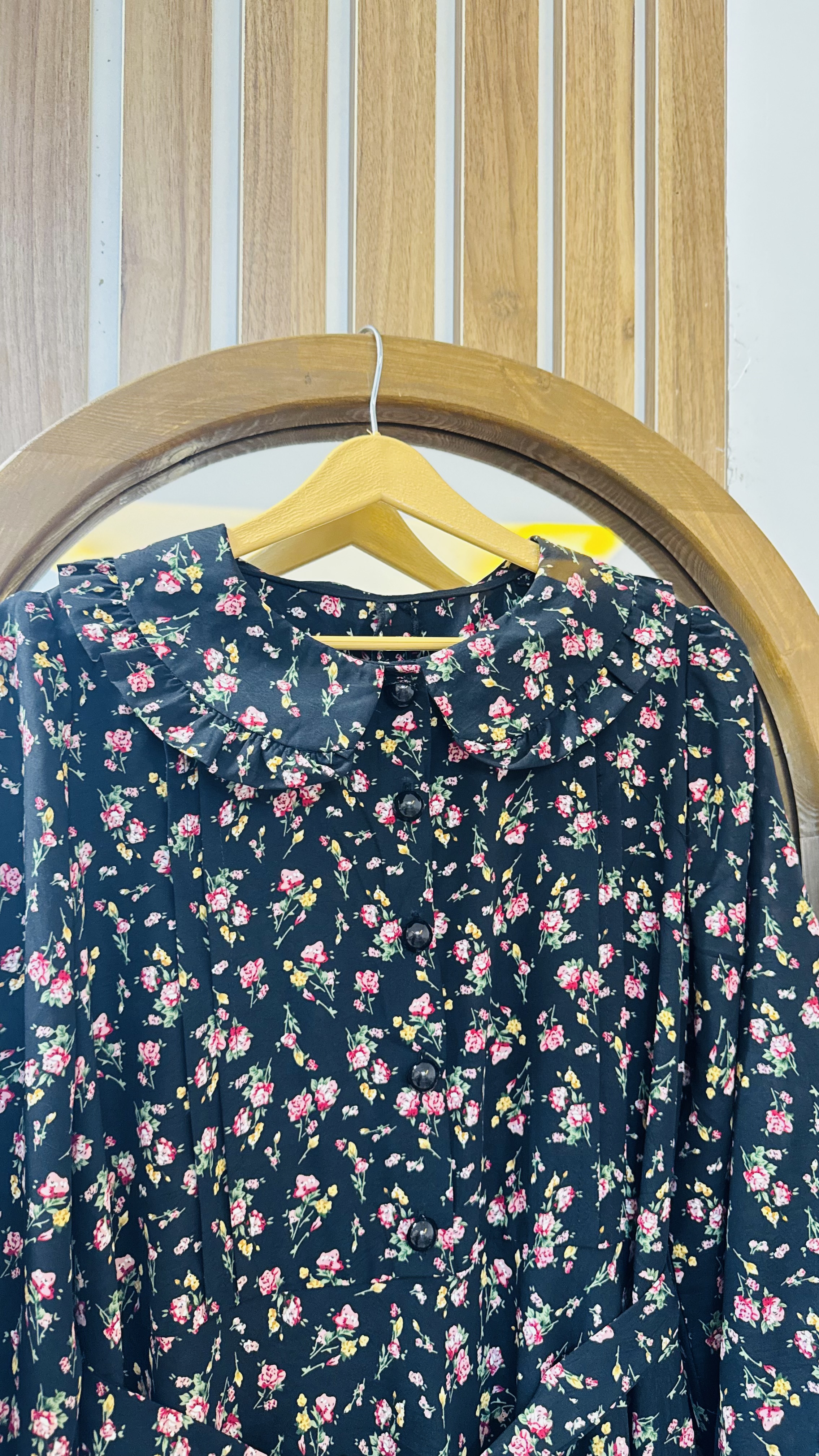 دستهبندی: پیراهنآستین: مچدار دکمه خورفرم لباس: جلو دکمه خور و دامن پیراهن کلوش کاملجنس: کرپ نخ اعلایقه: به به چیندار