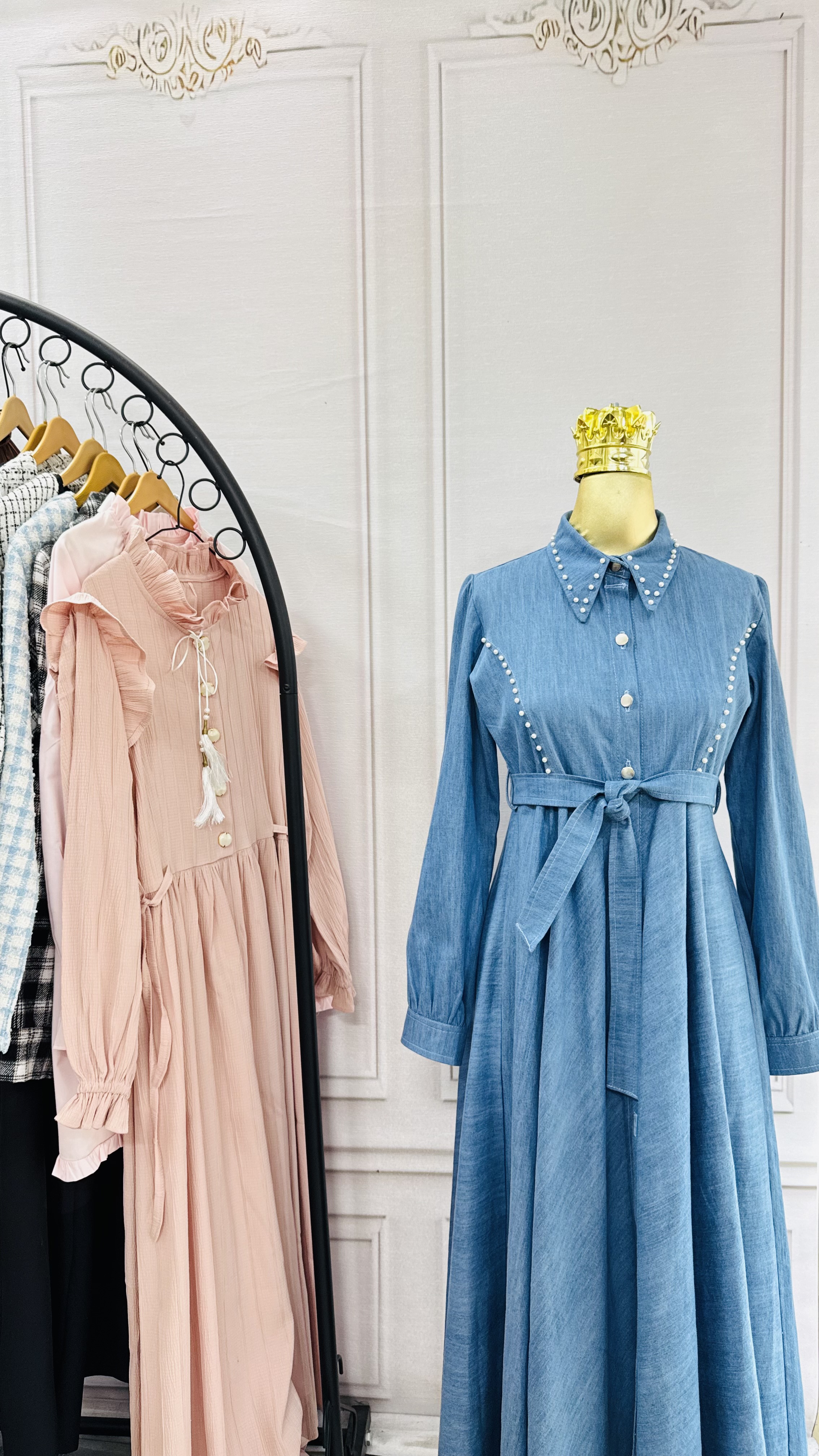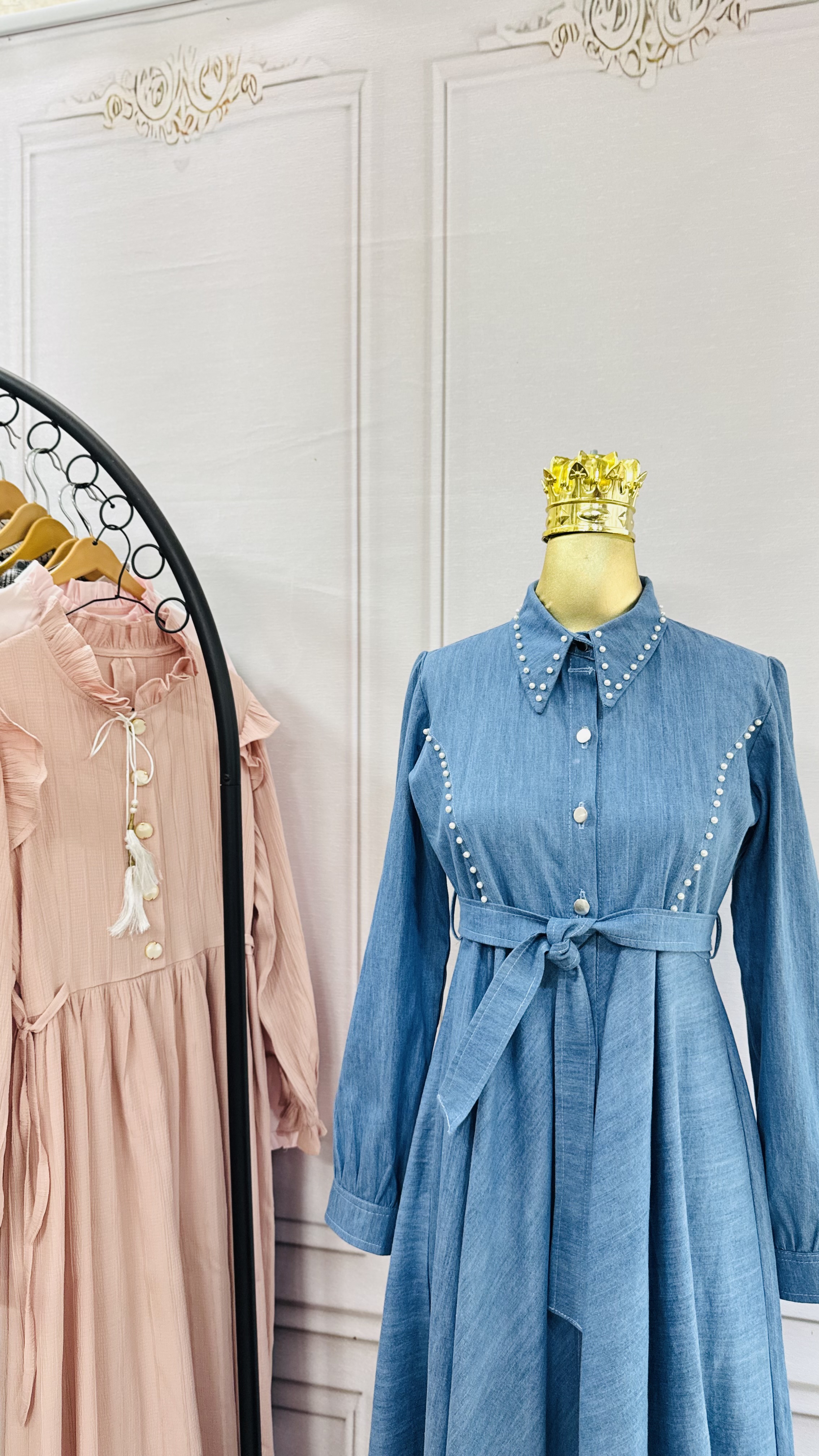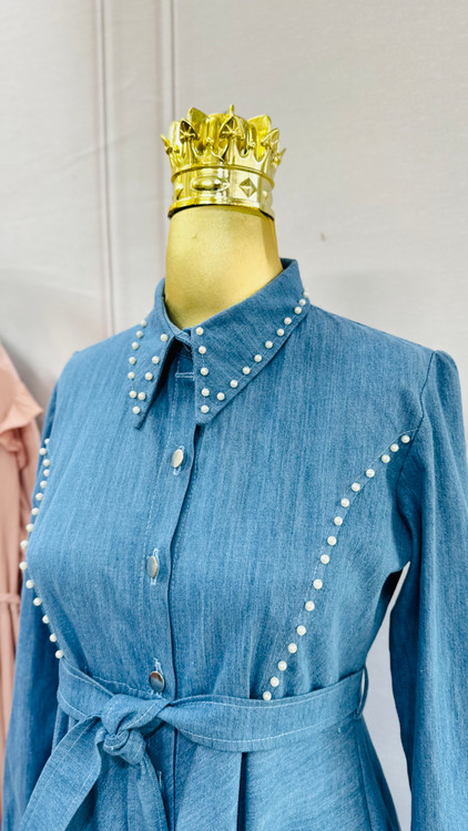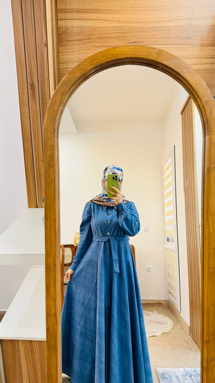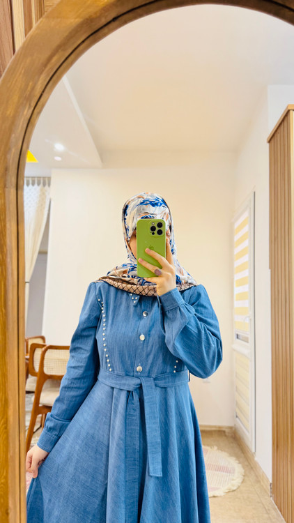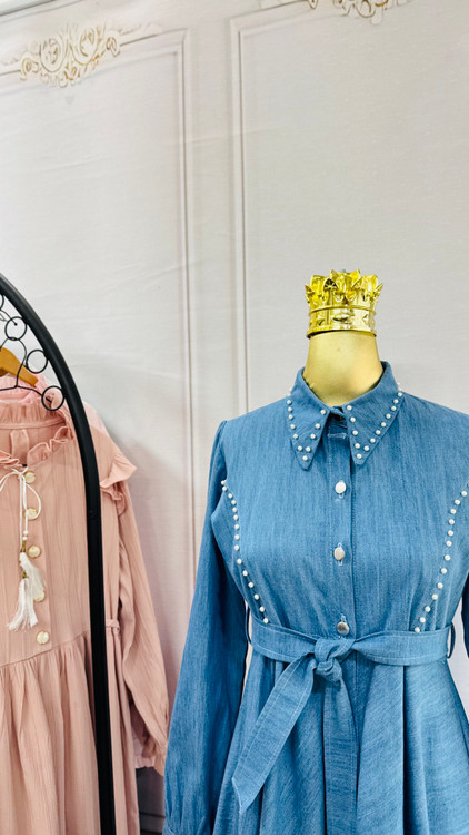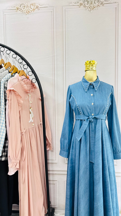 دامن پیراهن کلوش کامل و جلو دکمه خور و جواهردوزی شده✅