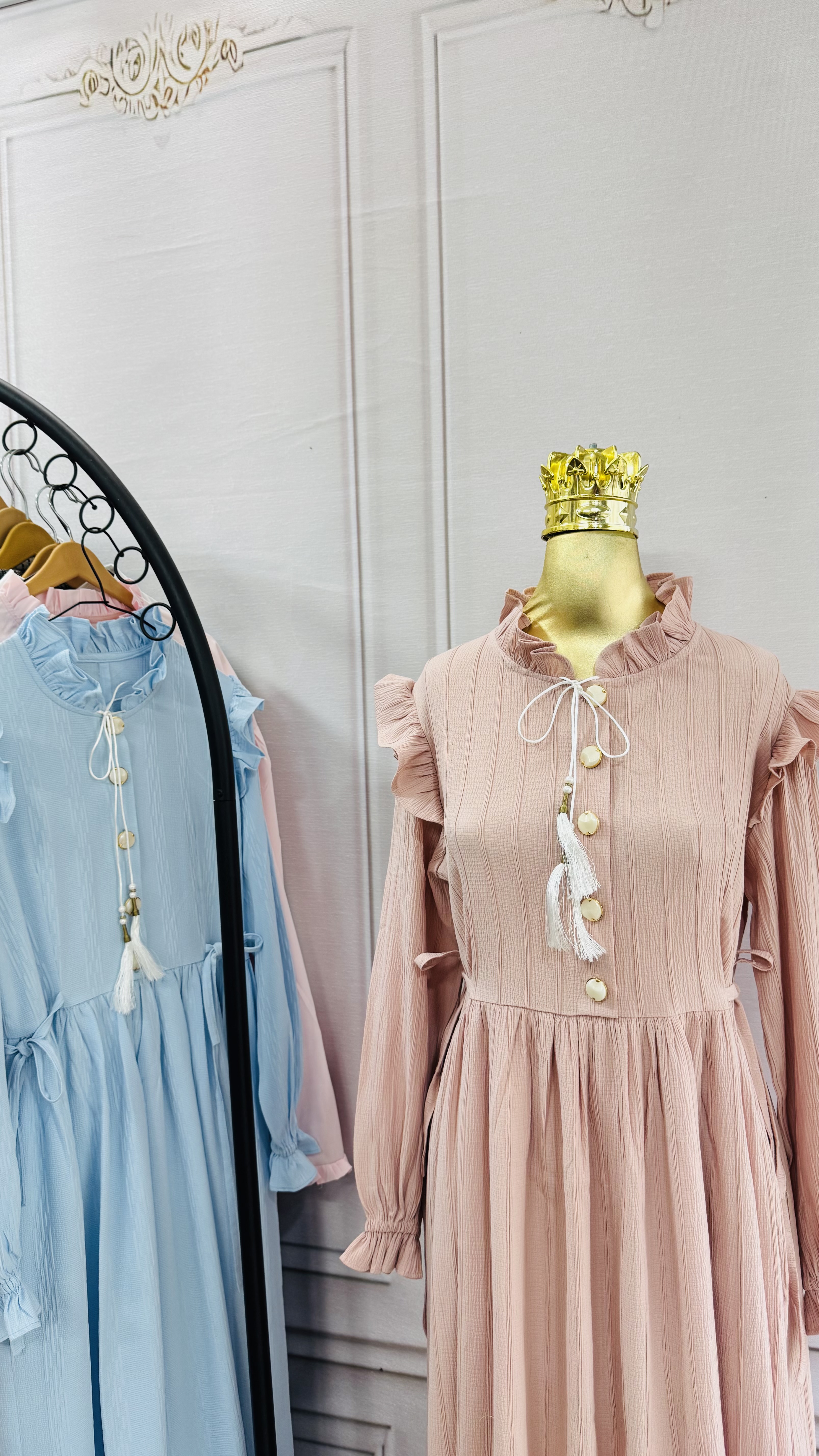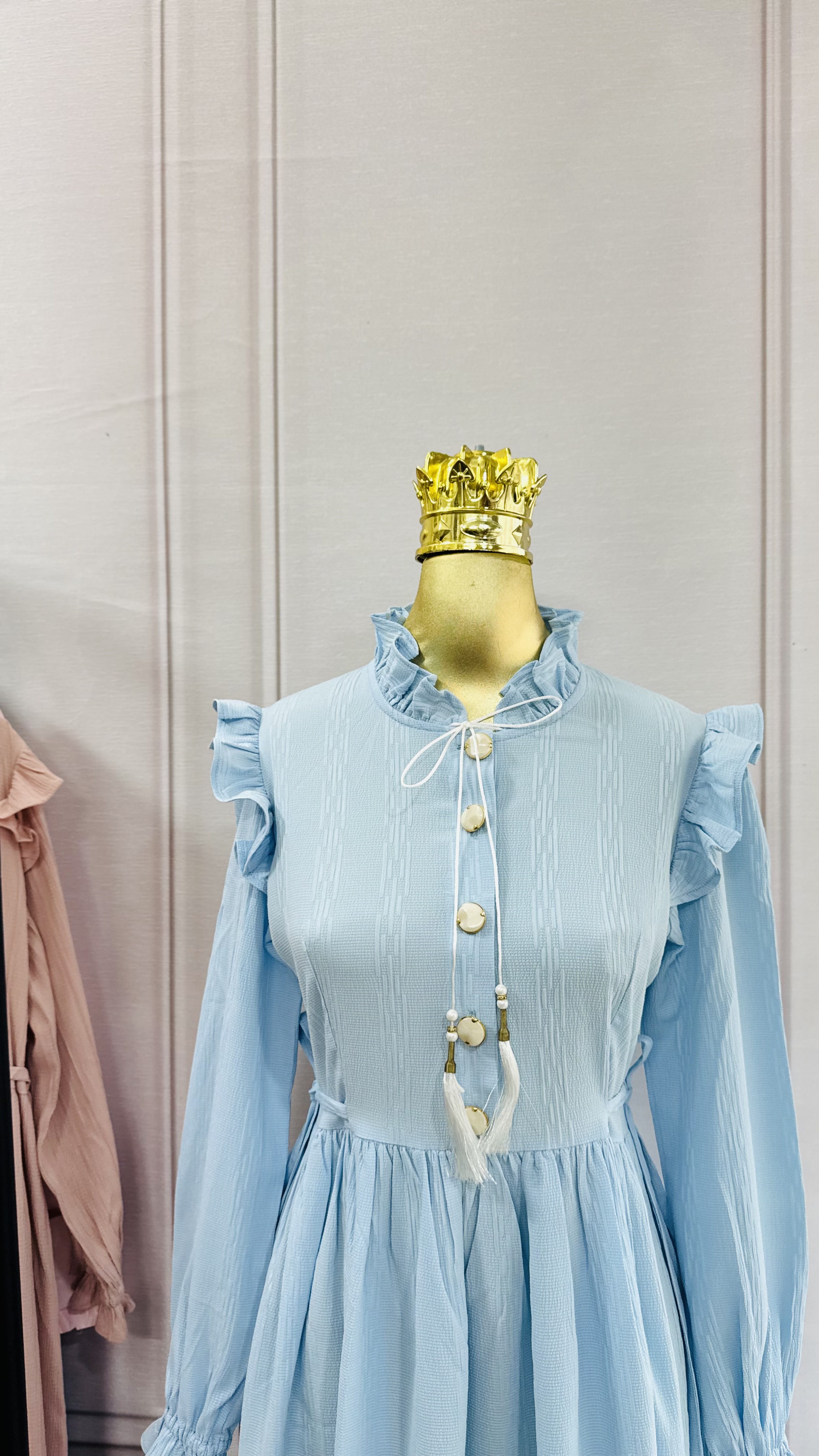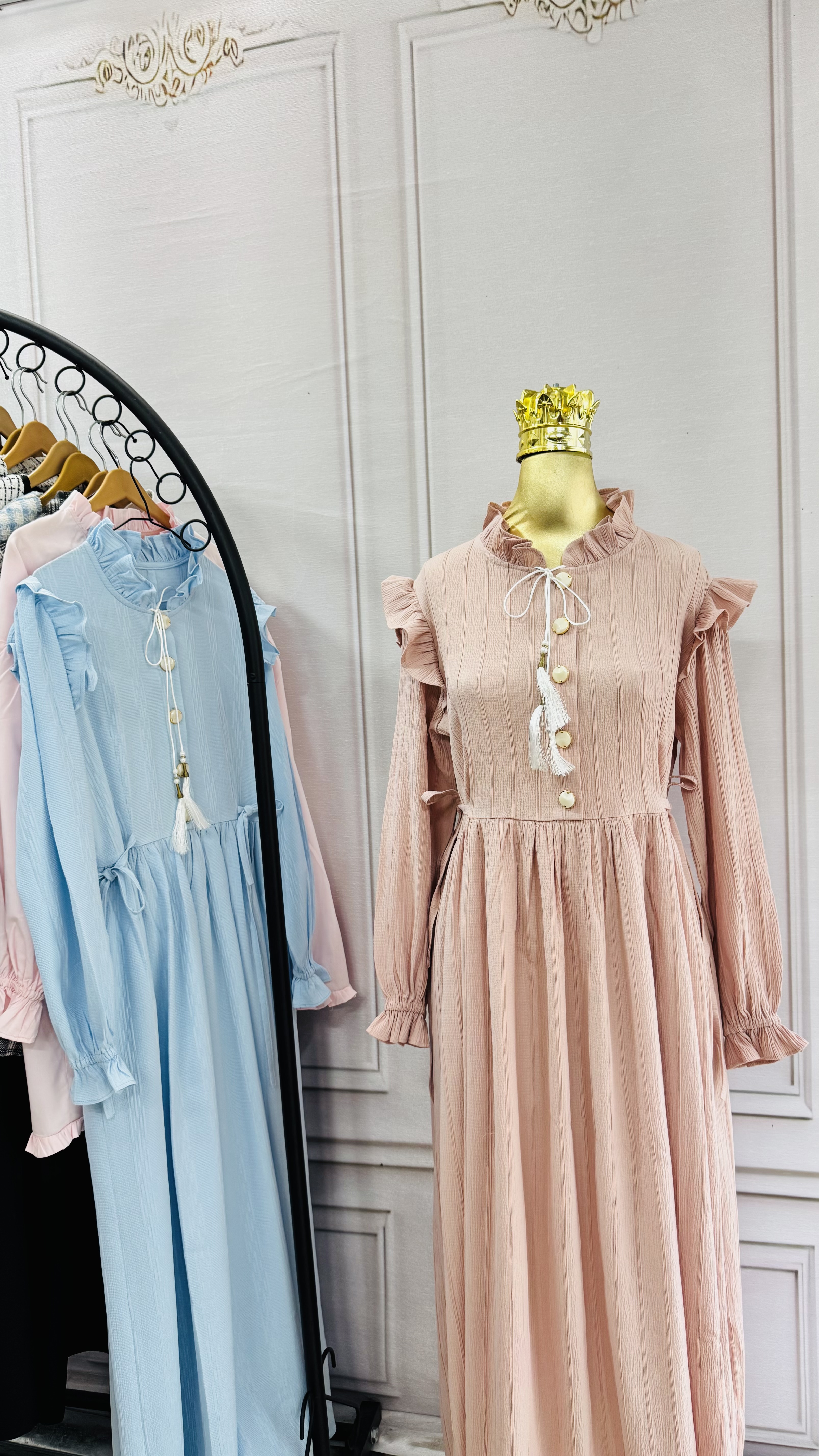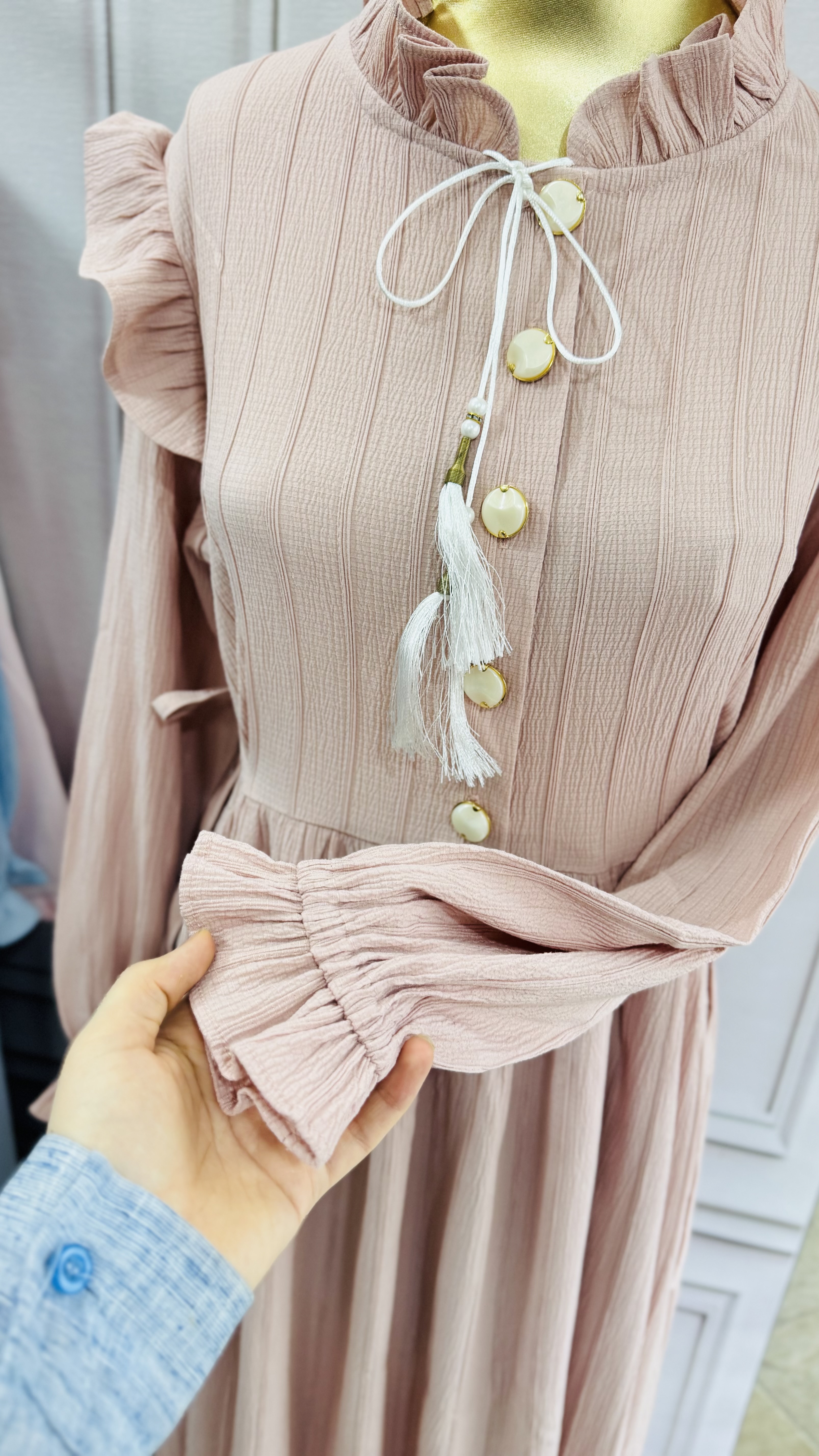 مدل آستینکشدار لبه پرپریمدل پیراهنجلو دکمه خور کمر جدا و چیندار و دارای بند تنظیمجنسآیوا اعلارنگبندیدارد