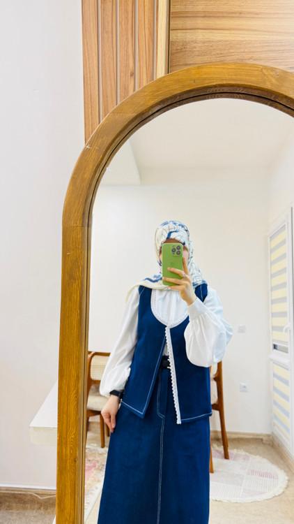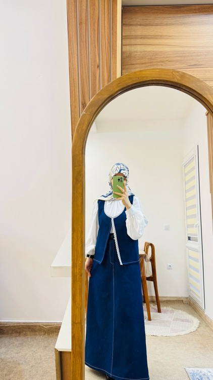 جنس جلیقه ودامن: جین سنگشور ترک بدون رنگدهی و پرزدهی و آبرفت✅
