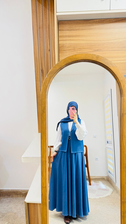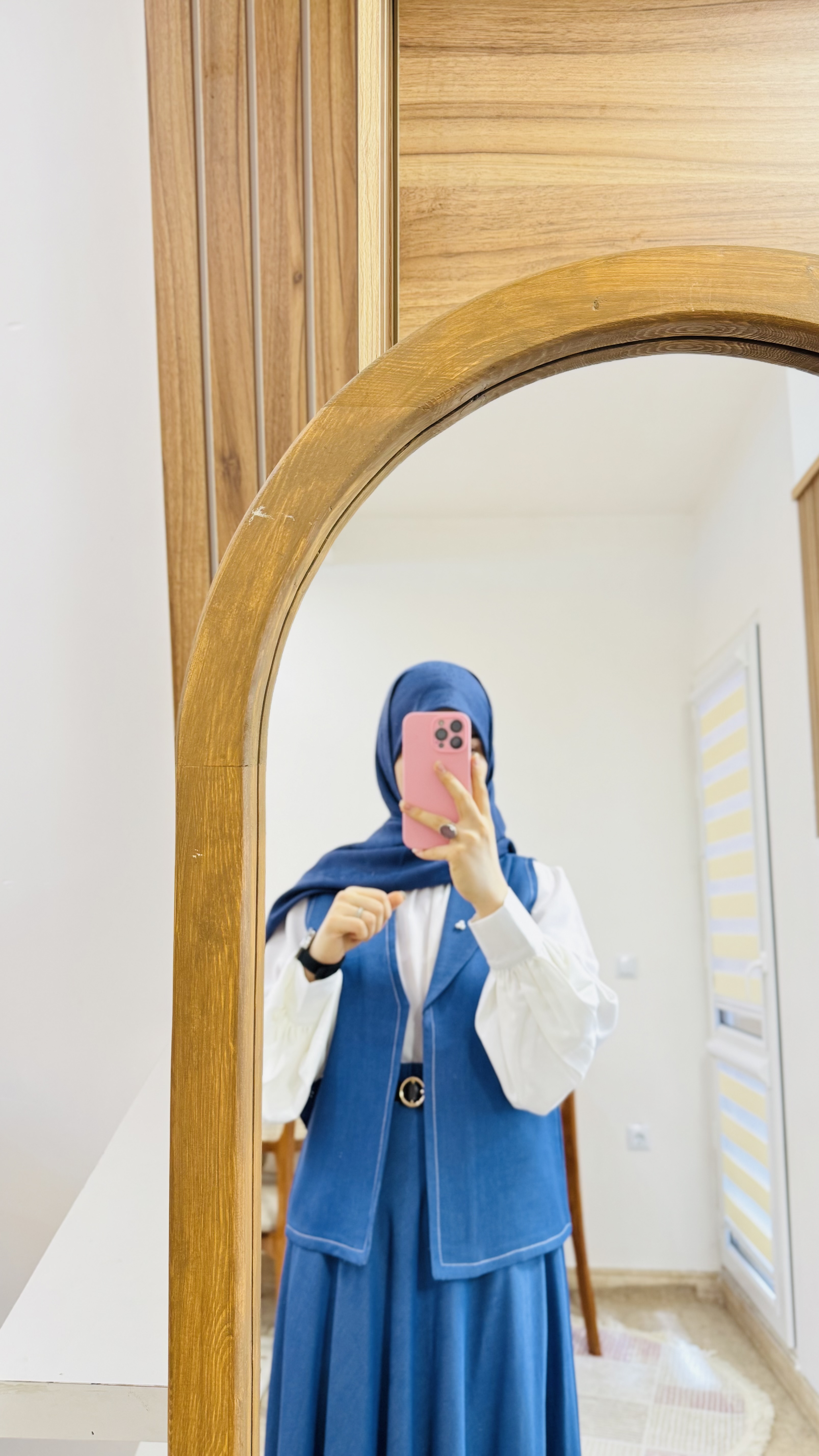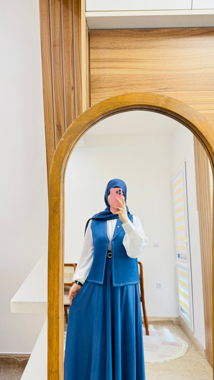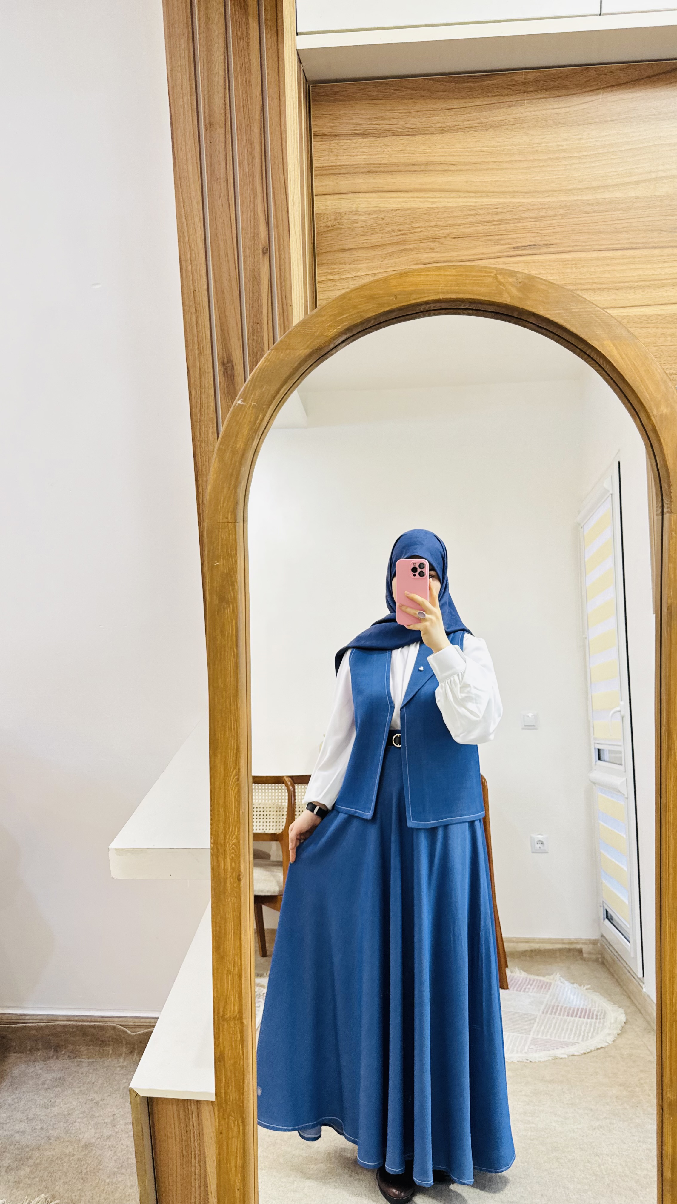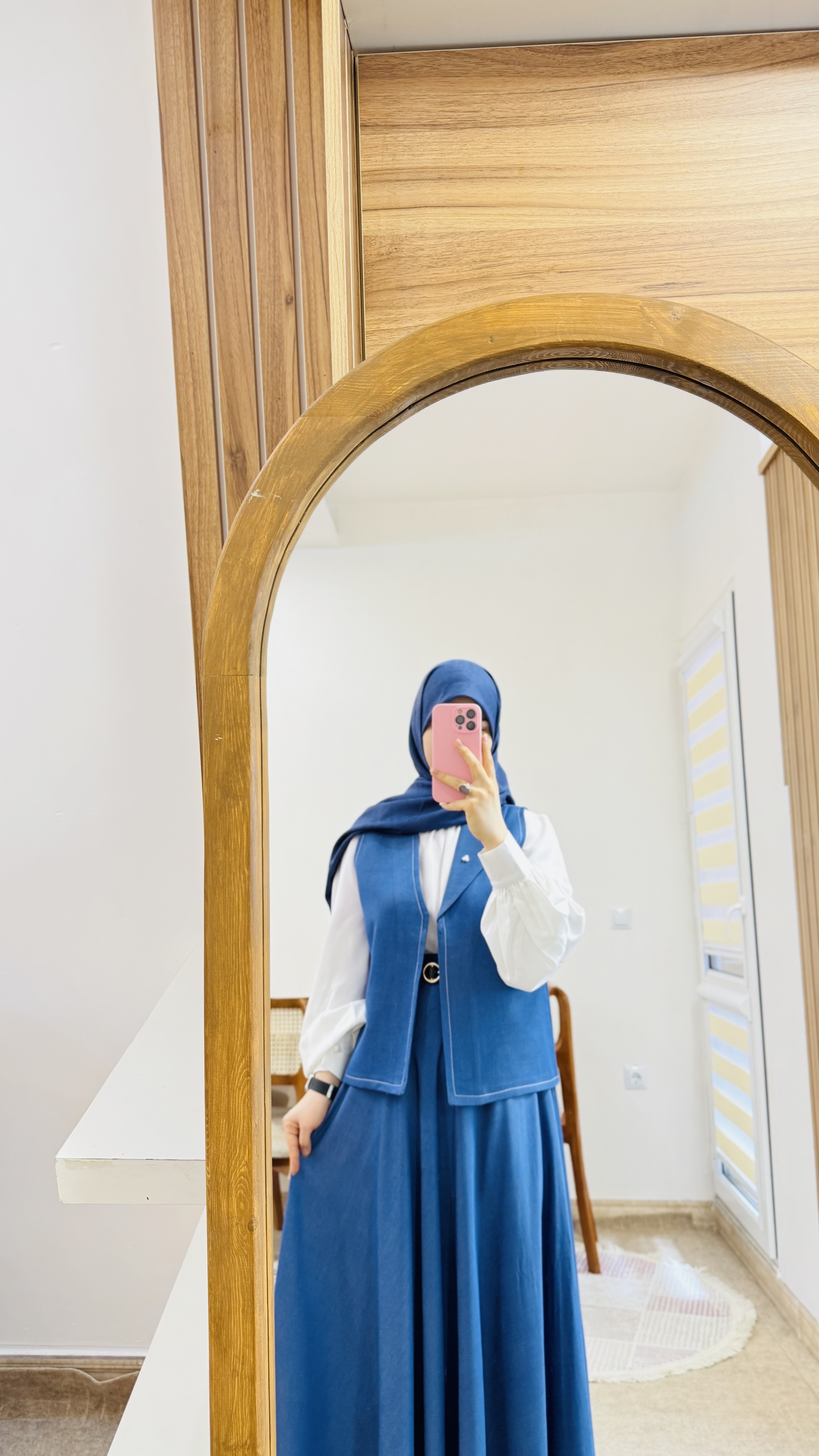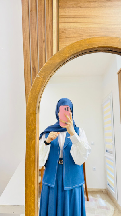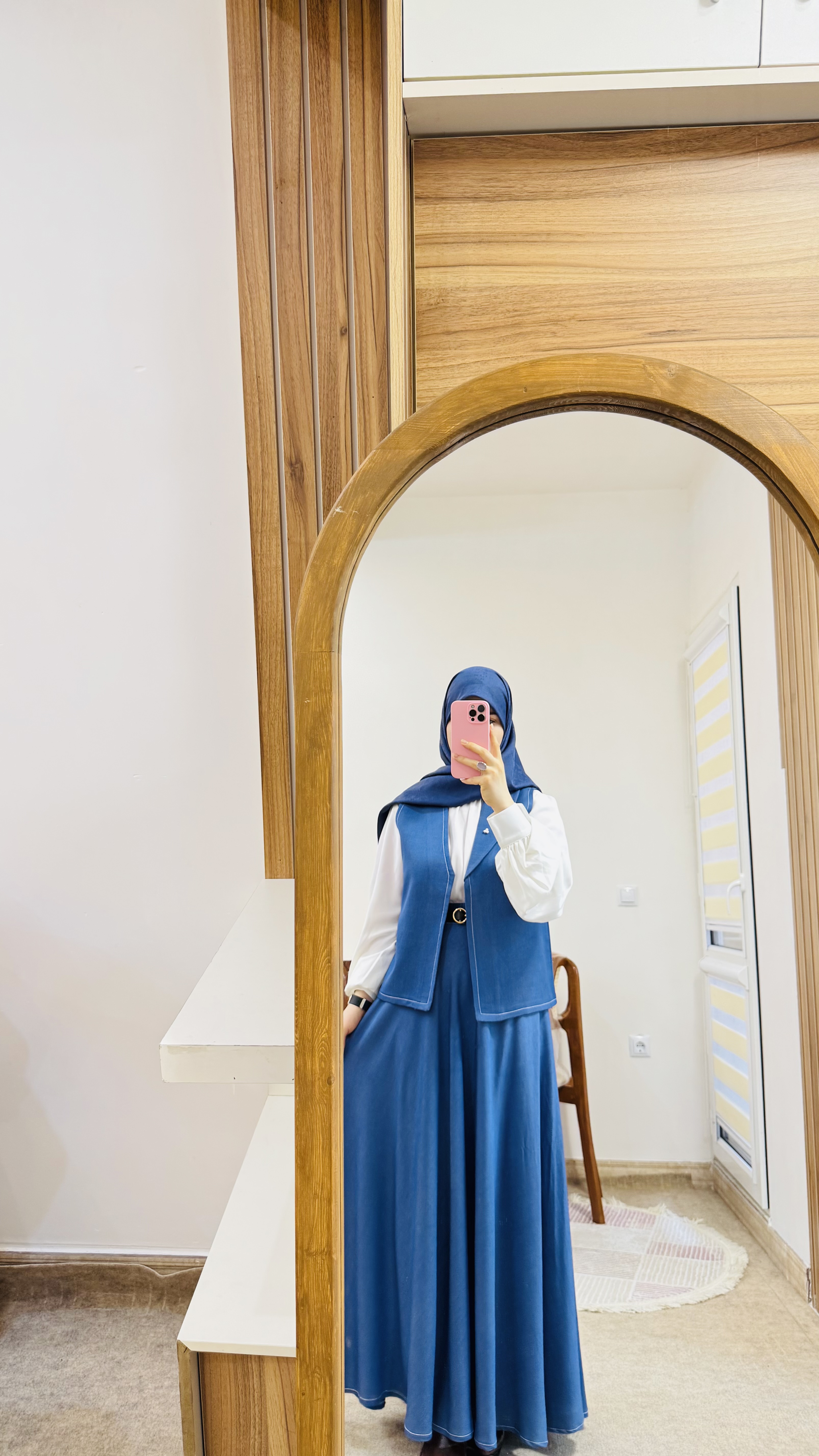جنس جلیقه ودامن: جین کاغذی ترک اعلا بدون پرزدهی و رنگدهی وآبرفت✅