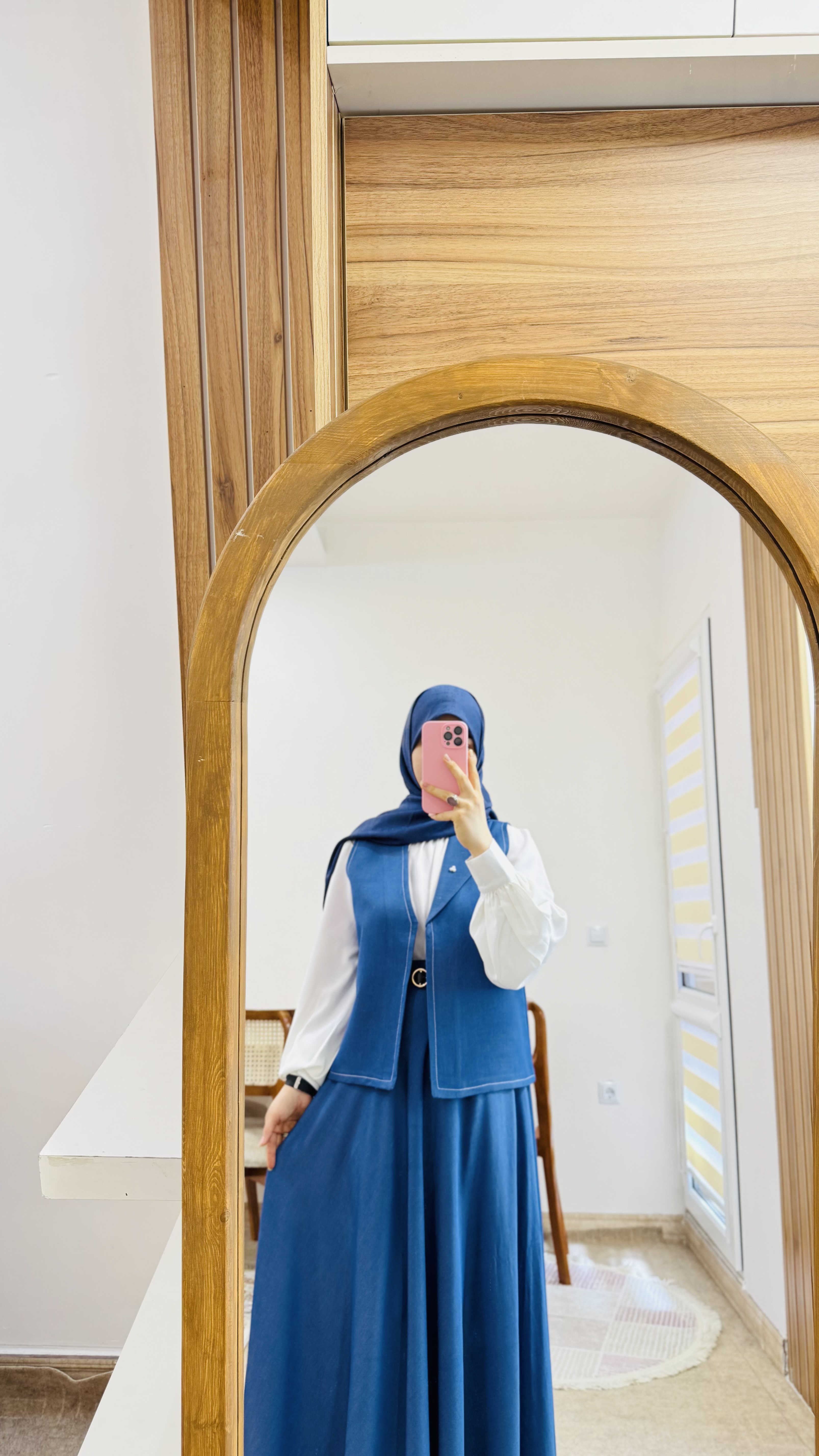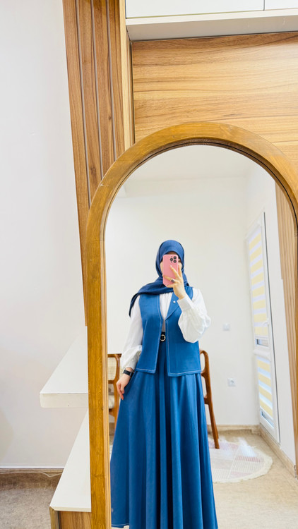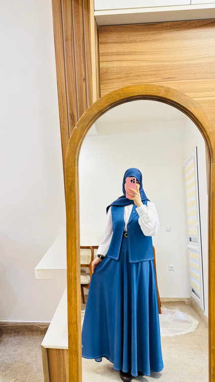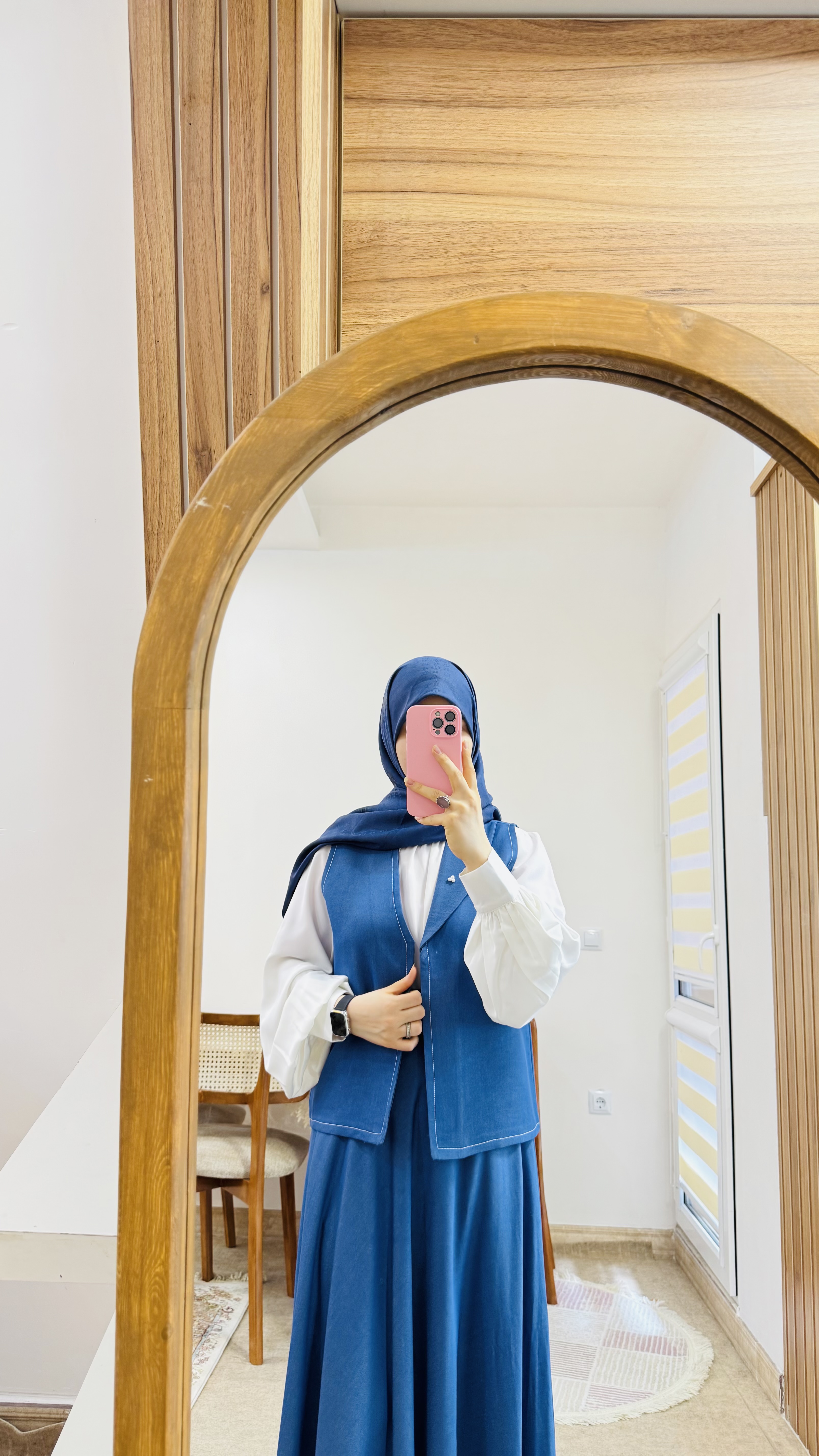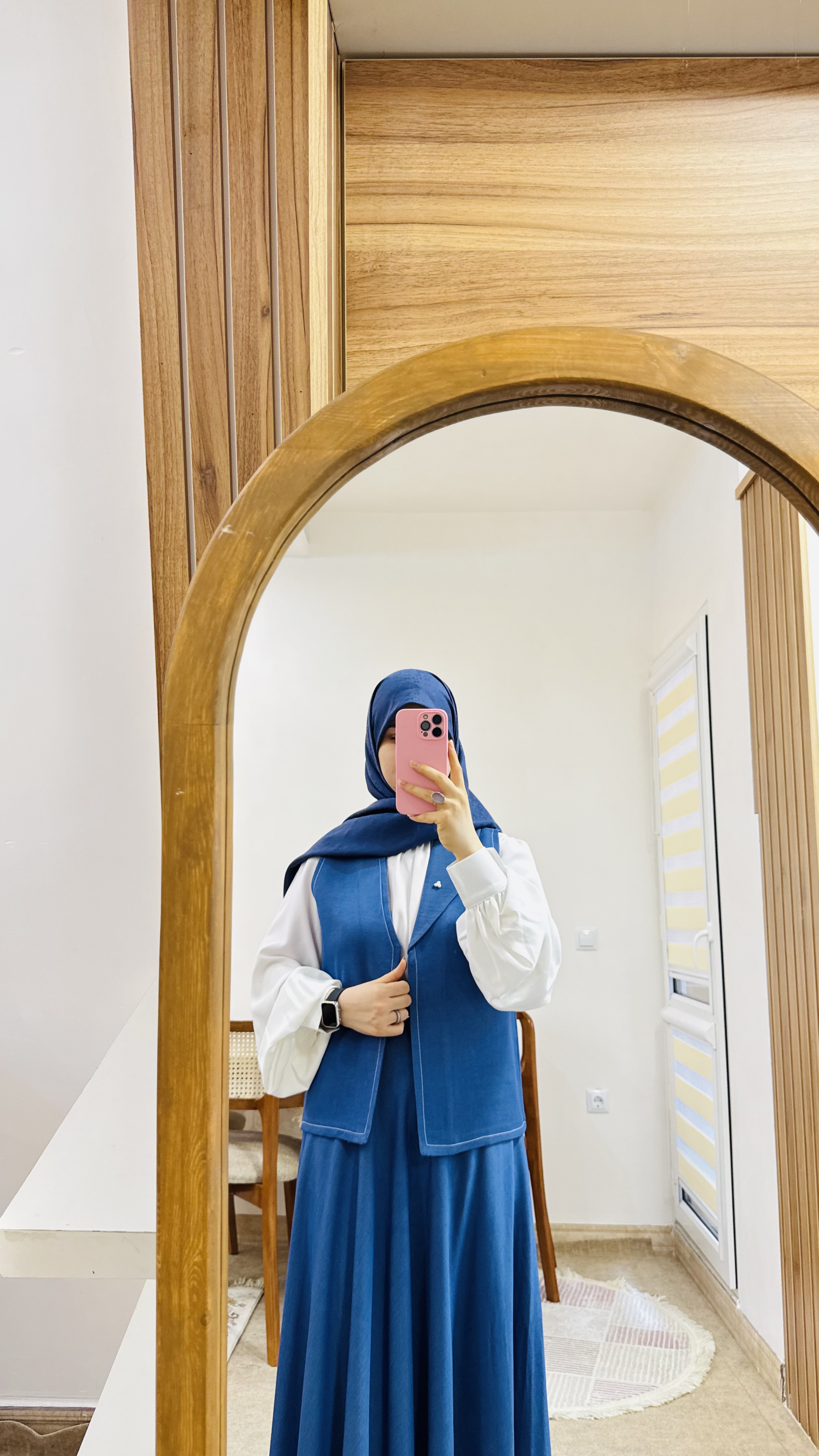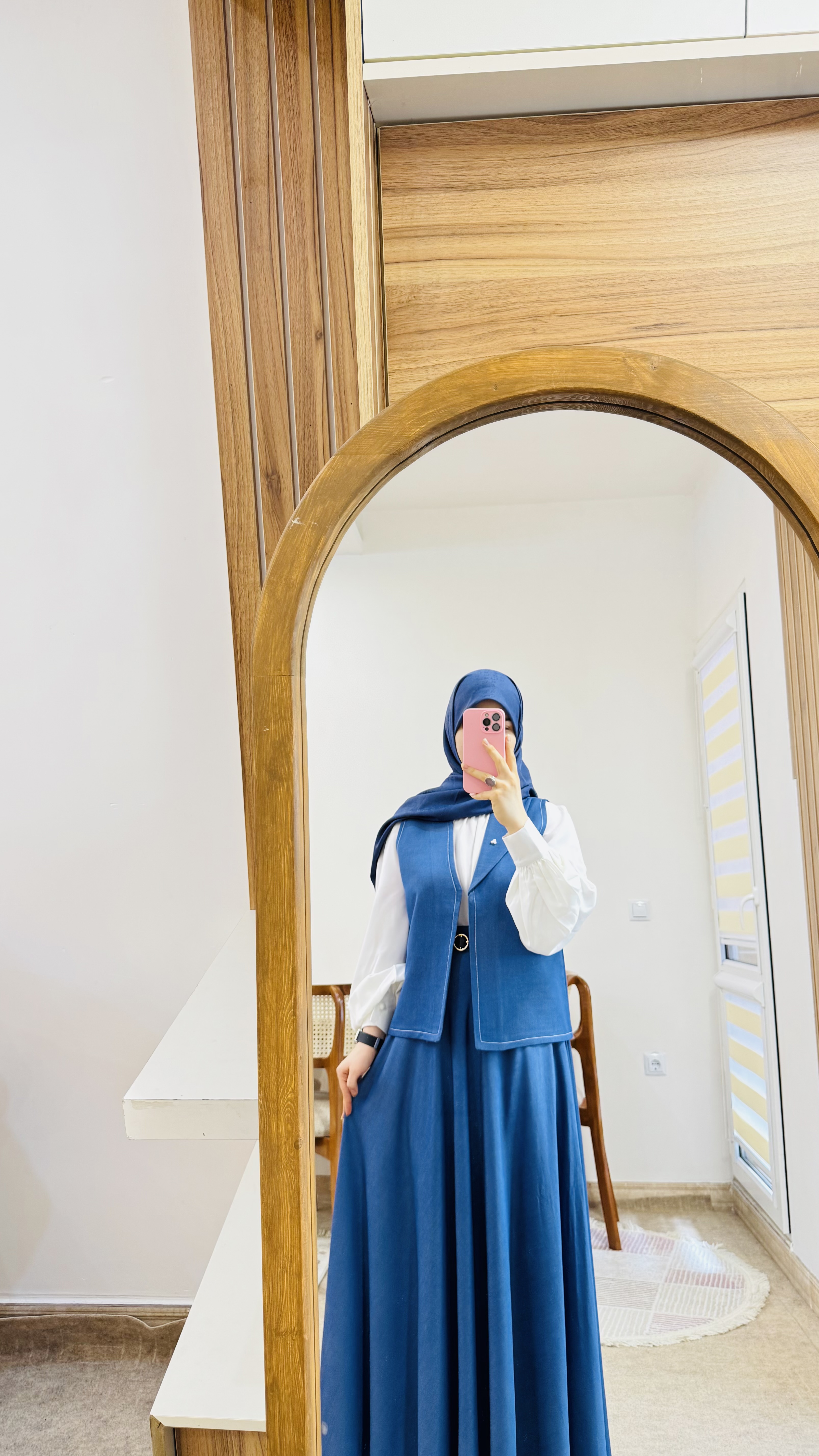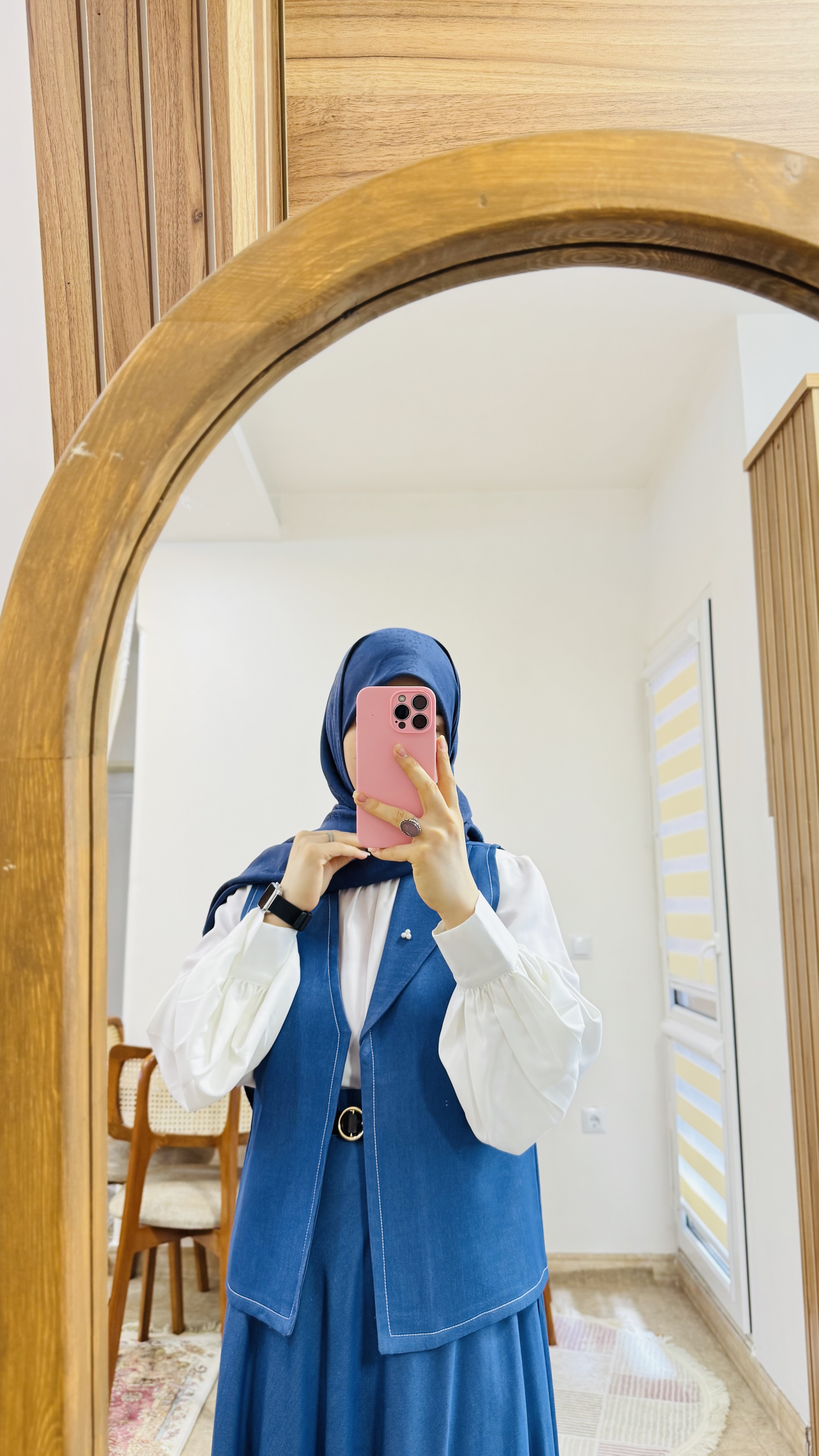 جنس جلیقه ودامن: جین کاغذی ترک اعلا بدون پرزدهی و رنگدهی وآبرفت✅